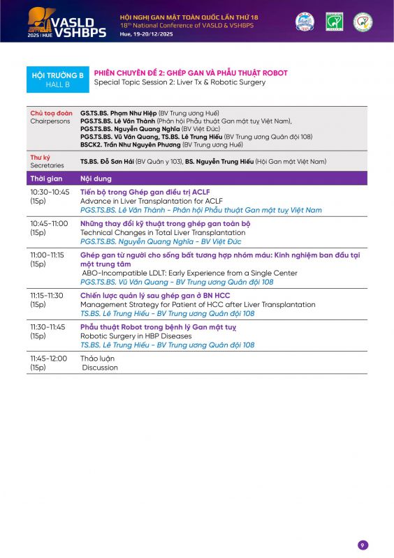 - Thư mời và Chương trình Hội thảo Khoa học Ghép gan "Cập nhật những tiến bộ trong Phẫu thuật và Quản lý điều trị sau Ghép gan" 3-4/3/2023