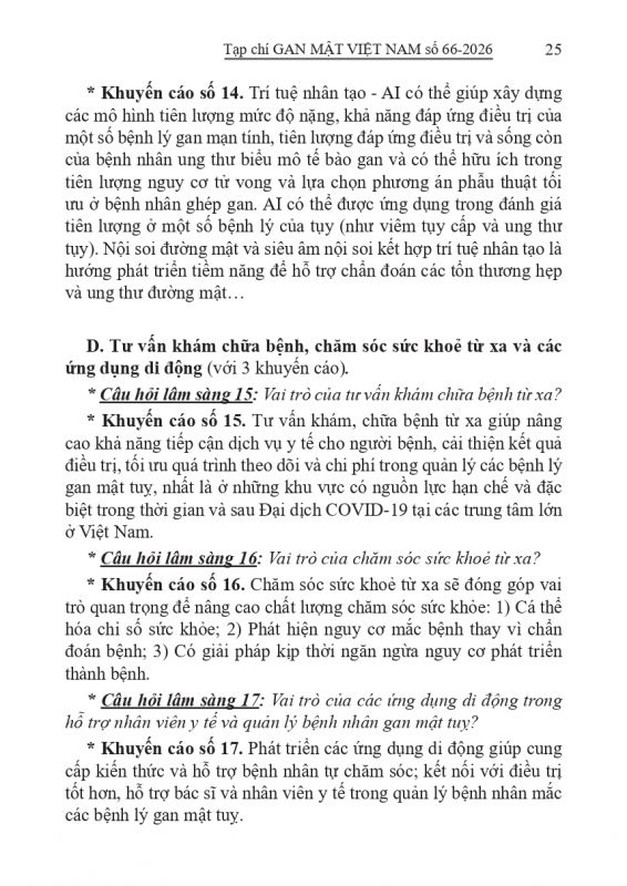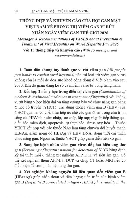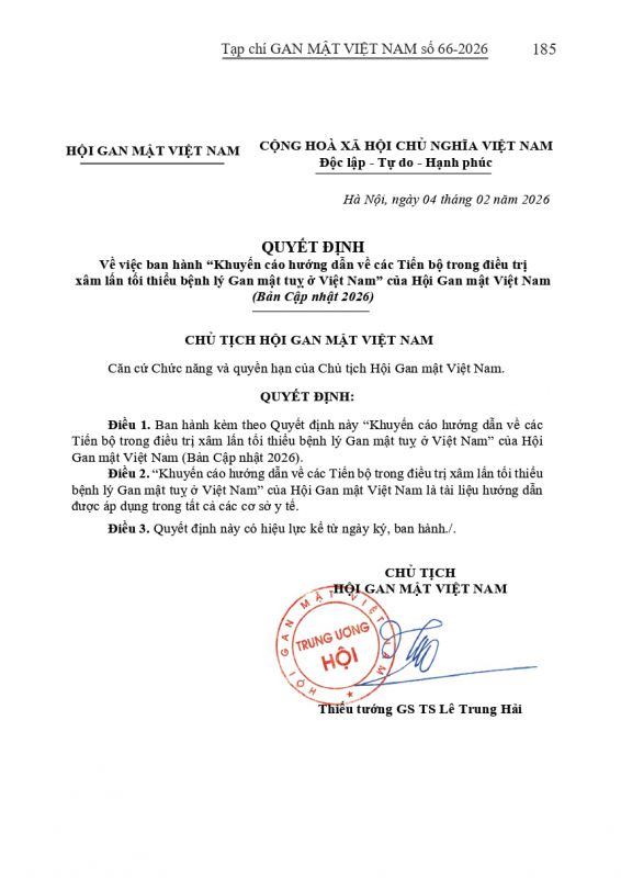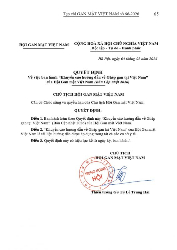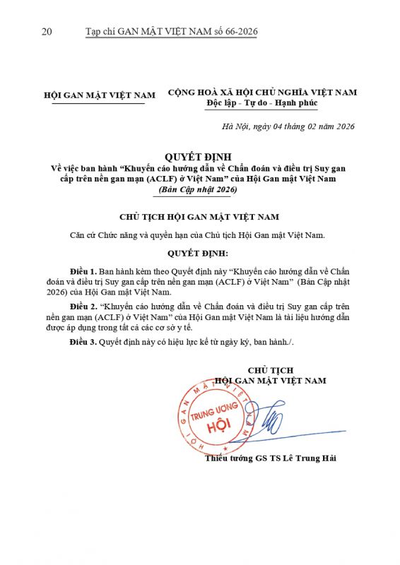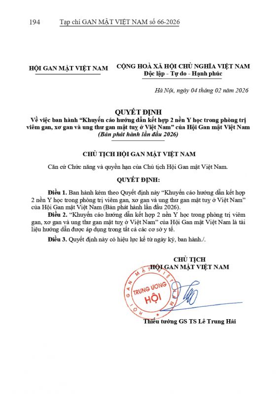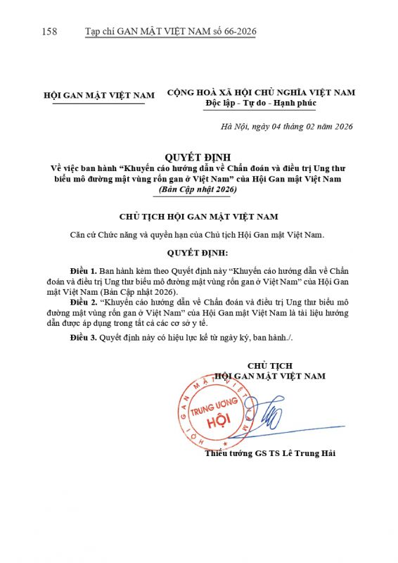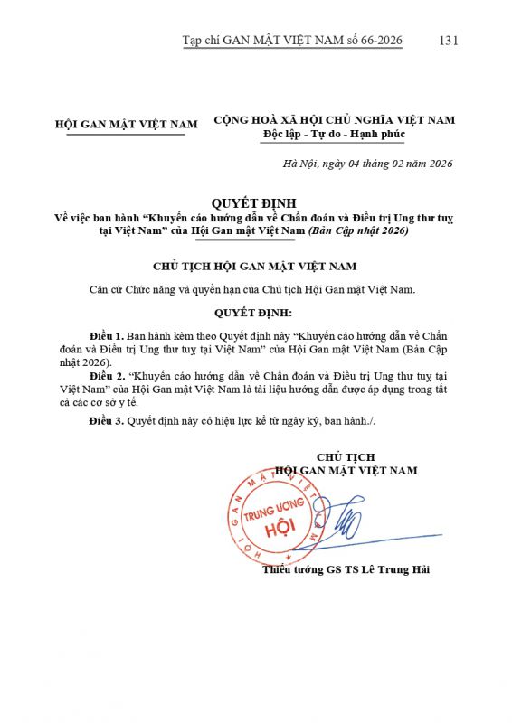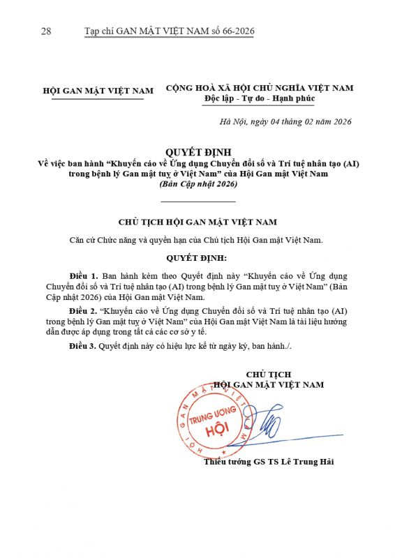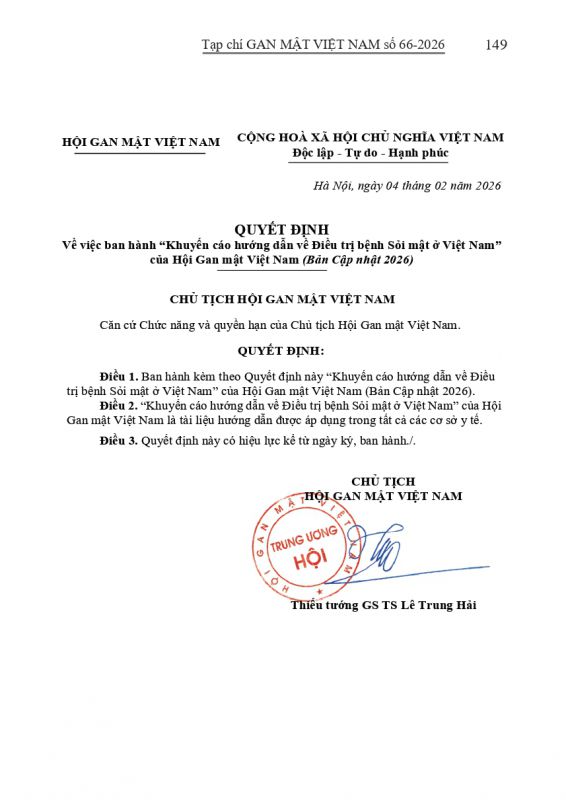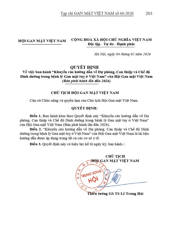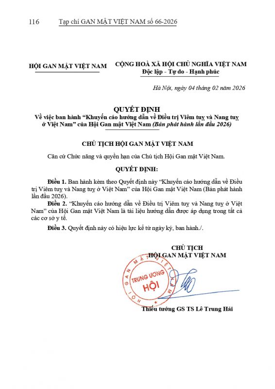 - Tạp chí Gan Mật số 57 : "KHUYẾN CÁO VỀ CHẨN ĐOÁN VÀ ĐIỀU TRỊ BỆNH LÝ GAN MẬT TUỴ TẠI VIỆT NAM"