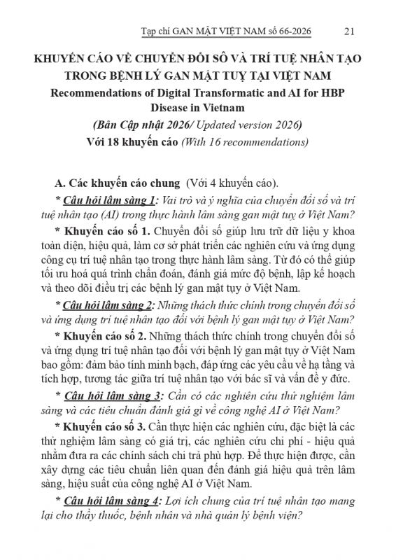 - Khuyến cáo hướng dẫn về chẩn đoán và điều trị bệnh lý gan mật tuỵ tại Việt Nam