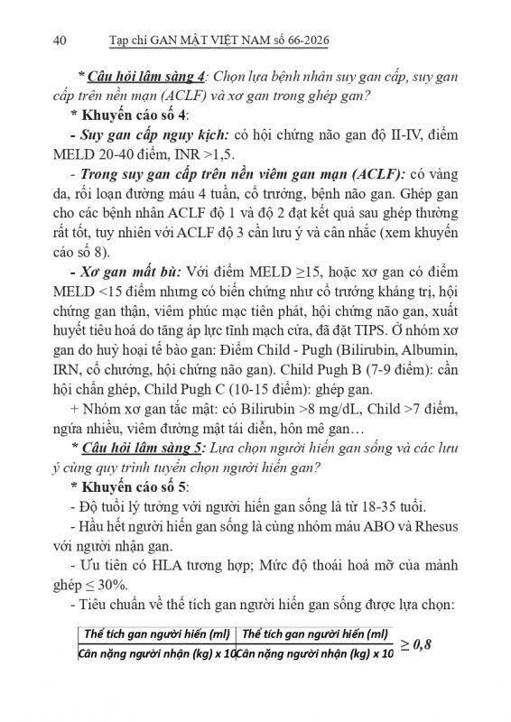 - GHÉP GAN DO SUY GAN CẤP TRÊN NỀN MẠN & XÂY DỰNG KHUYẾN CÁO VỀ ACLF Ở VIỆT NAM